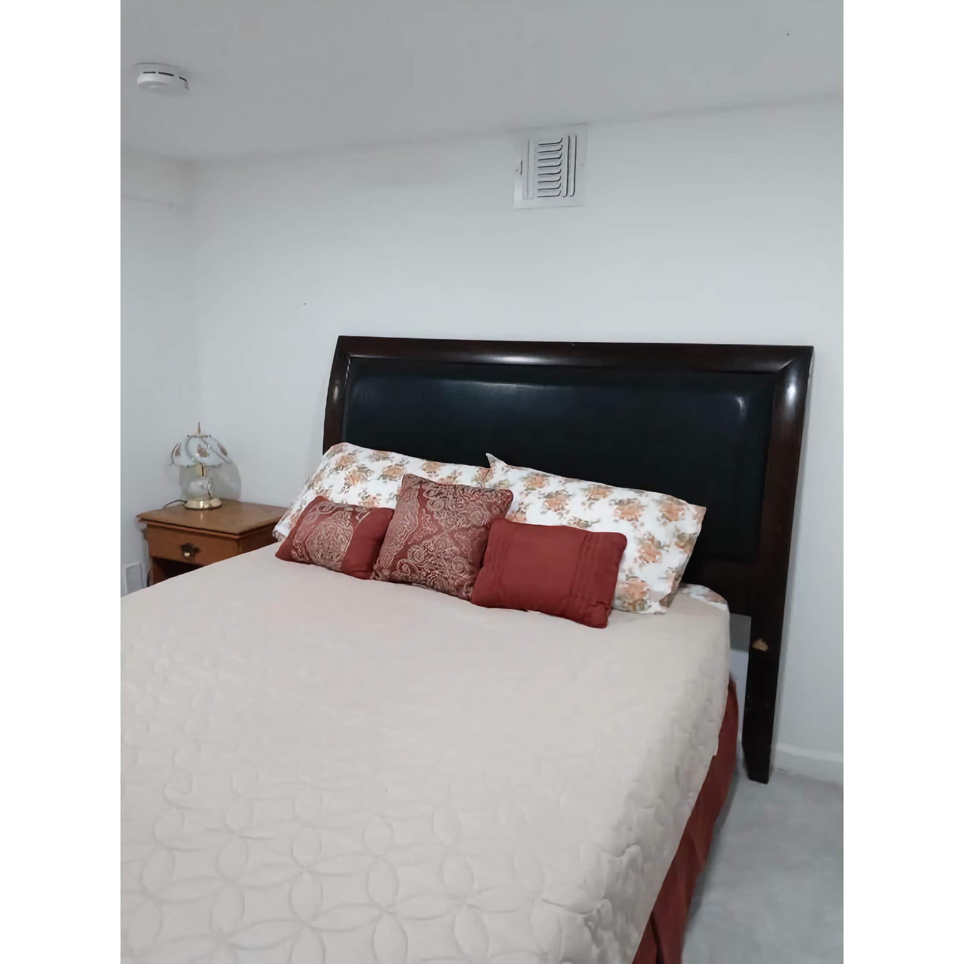 Queensize bedroom setting, bathroom with a shower ,walk in closet, washer and dryer available,kitchennette with refrigerator, stovee and microwave. Free driveway and street parking.